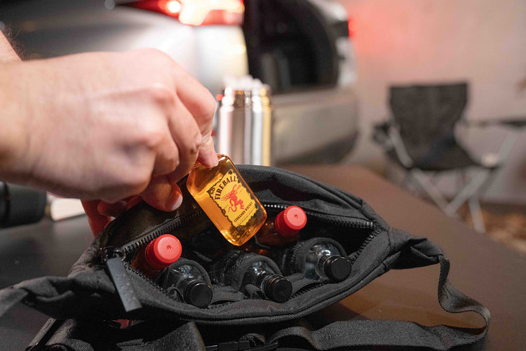 Crafted for those on the go, the Full Send is built to carry your favorite spirits with ease and style. Its sleek, slim design cleverly conceals an impressive storage capacity. Equipped with a top handle and a comfortable shoulder strap, it lets you go hands-free for effortless transport. Whether you're traveling or on an adventure, this is the perfect companion for the modern mover.